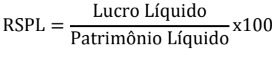 Já a RSPL, Marion (2012) define como poder de ganho dos proprietários, quanto os proprietários ganham por cada real investido na empresa, seu cálculo é feito através da divisão do Lucro Líquido pelo Patrimônio Líquido da empresa, cujo cálculo é o seguinte: