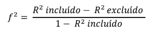 Em seguida, a validade preditiva, indicador de tamanho do efeito e os coeficientes de caminhos foram usados para demonstrar qualidade, avaliando a acurácia do modelo, o desenvolvimento das equações pela análise dos coeficientes que se assemelham aos betas das regressões e o quanto cada construto é importante para do modelo (Cohen, 1988; Hair et al., 2014). Sendo assim, foram avaliados os tamanhos dos efeitos (f2) e (q2) e a relevância preditiva (Q2). O f2 é calculado da seguinte forma (Hair Jr. et al., 2014):