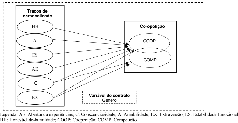 Resultados de estudos recentes têm conduzido ao desenvolvimento de um modelo de traços de personalidade mais abrangente, o HEXACO (Ashton & Lee, 2007, 2008). Esse modelo contempla seis fatores e vem apresentando resultados superiores ao modelo Big Five na explicação de vários critérios associados ao comportamento humano, em diferentes contextos (Ashton & Lee, 2008; De Vries & Van Kampen, 2010; De Vries, 2013). Diante do desenvolvimento do novo modelo de traços de personalidade e com o intuito de avançar as discussões relacionadas aos traços de personalidade como antecedentes da coopetição em nível individual, este estudo tem como objetivo analisar, a partir do modelo HEXACO de traços de personalidade, quais as características de indivíduos da área de negócios que influenciam a coopetição.