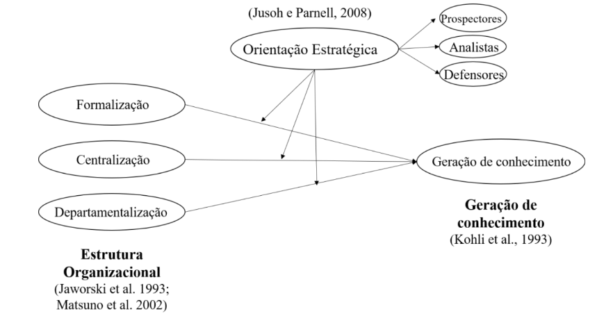 Ademais, as hipóteses H1, H2 e H3, encontram sustentação na teoria da geração de conhecimento de Nonaka e Takeuchi (1996). Esta teoria pressupõe a firma como um organismo dinâmico. Para ocorrer a geração de conhecimento nesse contexto, a EO da firma precisa de flexibilidade, ou seja, menor formalização, menor centralização e menor departamentalização.