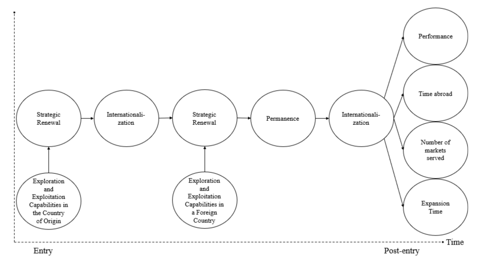 The IB literature states that strategic renewal, driven by dynamic exploration and exploitation capabilities, influences the internationalization of born global companies. However, after entering foreign markets, companies must constantly adapt to the movement of the international market (Teece, 2014). In this sense, while the literature has focused on the understanding of this process in the selection of markets, or foreign entry modes to serve these markets, without considering the time and the dynamic of the process. Also, little is known about the strategic renewal and its influence on the permanence of born globals from emerging markets, particularly in the case of digital born globals (Vadana et al., 2019).