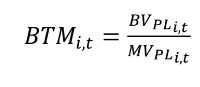 BVPL(it) is the book value of the Net Equity, for each company analyzed (i) at end of the year (t);