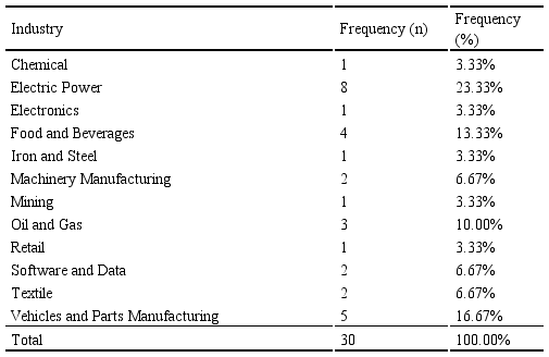 The following table (Table 1) shows the segregation of these companies in their industries, according to Economatica® classification.