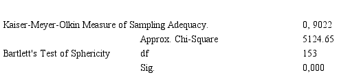Para analisar a adequação da amostra e verificar a adequação da análise fatorial foram conduzidos os testes de Esfericidade de Bartlett e Kaiser-Meyer-Olkin (KMO) (Fávero et al., 2009). Os resultados de ambos os testes estão apresentados na Tabela 4.