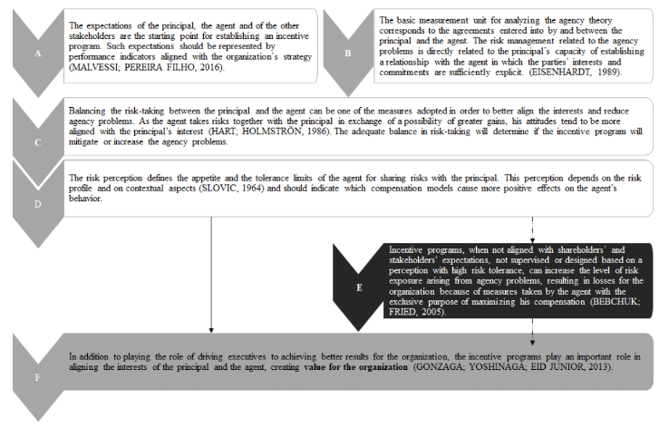 Figure 2 makes it evident that the agent’s risk perception can be a variable that influences the path between the incentive program and the creation of value for the organization. This is the key subject of this study, which was submitted to the research techniques applied and tested through the hypotheses listed below.