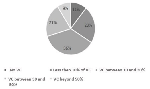 With respect to the VC compensation models adopted for the majority of executives who formed part of the sample, such compensation does not exceed 30% of the total compensation, as can be observed in Figure 4.