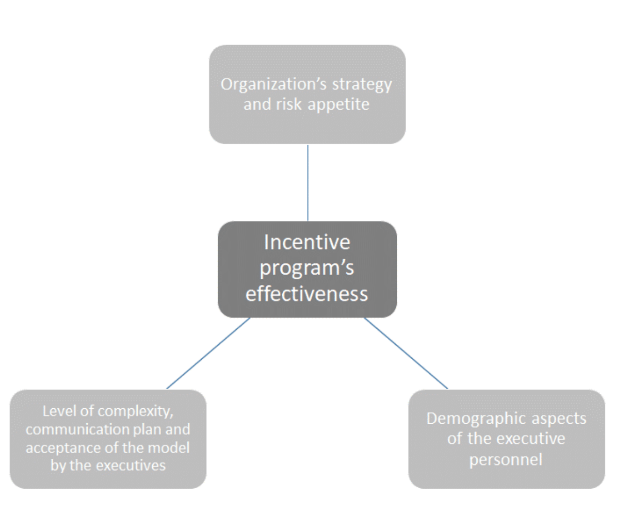 Through the interpretation of the results for this research and its adaptation to the reality of each organization, it is possible to develop optimized incentive models, taking into account the variables assessed and relations identified. The effectiveness of an incentive program depends on its alignment with the strategy and can result from factors such as: i. Organization’s strategy and risk appetite; ii. Demographic aspects of the executive personnel; and iii. Level of complexity, communication plan and acceptance of the model by the executives.