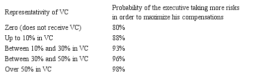 According to Table 3, models in which more than half of the executive’s compensation is variable have a 98% probability of leading him into adopting a risk-neutral attitude, in other words, taking more risks.