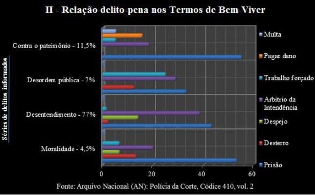 Por outra parte, percebe-se uma racionalidade punitiva que, longe de objetivar o castigo do corpo, tal como caracterizava a justiça do Antigo Regime, explora seu lado retributivo, enfatizando sua utilidade.32 A prisão com trabalho, por exemplo, emerge como pena no Código Criminal, mas, também nos Termos de Bem viver.
