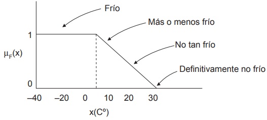 Lofti Zadeh (1965) utilizó como ejemplo el conjunto de hombres altos para ilustrar la aplicación de la lógica difusa. De acuerdo a la lógica clásica, se representaría el conjunto de “hombres altos” por aquel integrado por todos aquellos hombres cuya estatura es mayor o igual a 1,80 m, quedando excluidos todos los hombres con una altura inferior. De esta forma, un hombre de 1,80 m sería un hombre alto, mientras que un hombre un centímetro menor, de 1,79 m, no lo sería, algo que contradice el sentido común. Según propone la lógica difusa, el conjunto de “hombres altos” no tiene una frontera definida de pertenencia, por lo que a cada etiqueta de alto o bajo se asigna un grado de pertenencia que varía entre 0 y 1. De esta forma, un hombre que mida 1,75 m, sería un hombre alto con 0,9 grados de pertenencia. Esta misma lógica puede utilizarse para representar los grados de temperatura, según muestra la figura 2.