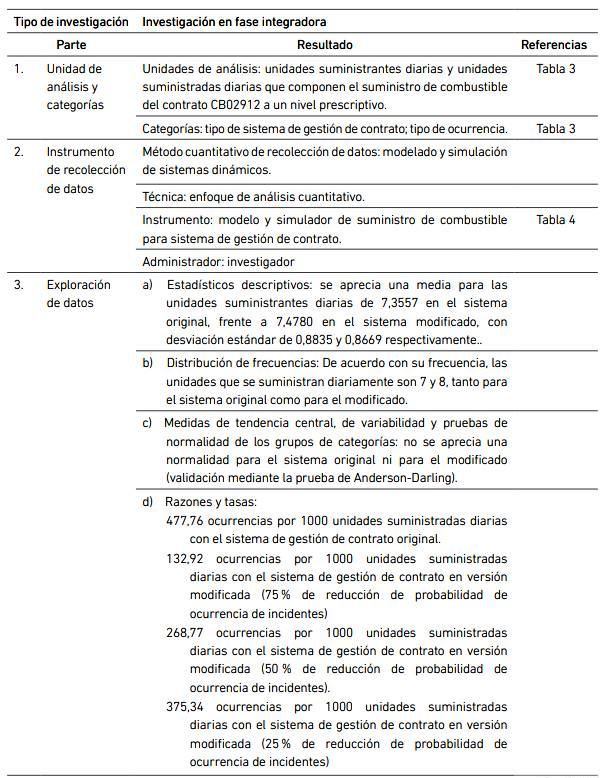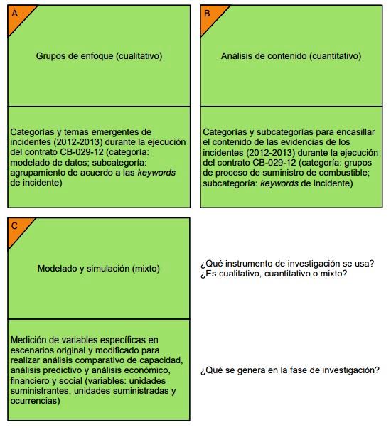 En la fase cuantitativa se aplica un análisis de contenido cuantitativo como instrumento de recolección de datos. Posteriormente, en la fase integradora de la investigación se realiza análisis con base en un modelado y una simulación del suministro de combustible (figura 4).