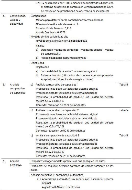 Es viable generalizar el comportamiento de las ocurrencias acontecidas durante la ejecución de contrato CB02912 a partir de los 274 casos reunidos para la presente investigación. Sin embargo, la correspondencia con la realidad práctica se verifica tan solo similar y correspondiente para los años 2012 y 2013, en niveles regular y alto respectivamente; posteriormente, los niveles de similitud y correspondencia son bajos. La fecha del incidente se explica particularmente mediante el tipo de incidente a un nivel estadístico (ANOVA one-way) en un 28,78 %. La relación anterior se expresa mediante la ecuación: