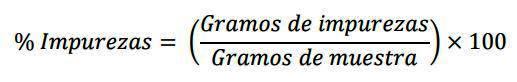 Para el porcentaje de impurezas se utiliza la ecuación 3: