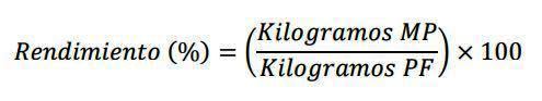 (3)Y para el rendimiento se utiliza la ecuación 4: