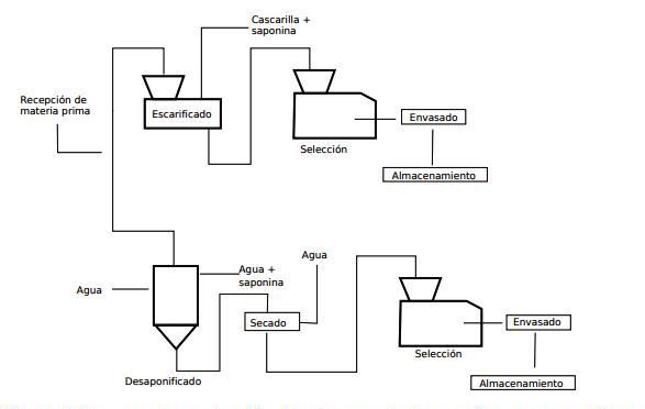 Cabe destacar que la tecnología de procesamiento de quinua ha evolucionado, desarrollándose maquinaria específica, como las lavadoras de quinua, el seleccionador de quinua y la escarificadora de quinua, y que el conjunto de criterios de calidad del producto está “asociado con el color de los granos, contenido de proteína del grano, contenido de saponina del grano, tamaño de grano y otros que demande el mercado y el uso final de la quinua” (Gómez y Aguilar, 2016, p. 27). Las características que deben reunir los granos de quinua procesada (beneficiada) en el momento de su comercialización: la calidad, clasificación, tolerancia y presentación (Indecopi, 2009), lo que requiere el mercado para la satisfacción del consumidor.