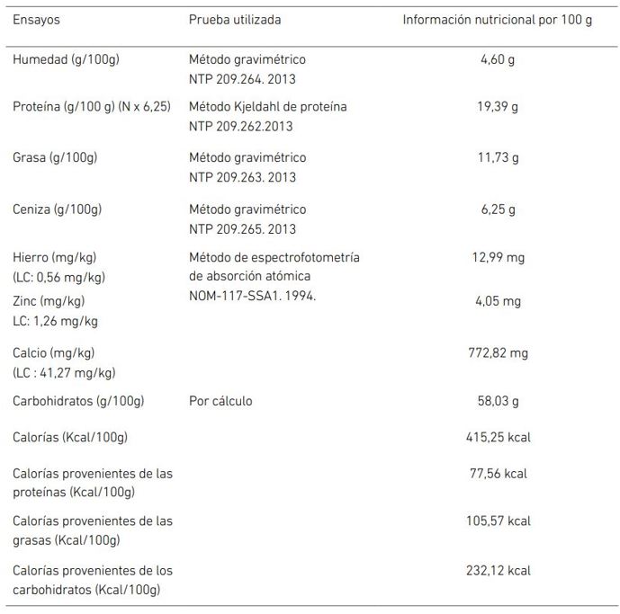 La empresa Certificaciones Peruanas (CERPER, 2016) analizó una muestra del producto y se obtuvieron los resultados de la tabla 3.