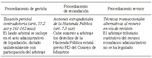 B. Otras técnicas transaccionales como la mediación, el arbitraje o la conciliación. A lo largo de la historia del derecho tributario, nuestro legislador ha declinado la opción de incluir técnicas propiamente transaccionales como la mediación, la conciliación o el arbitraje en tanto que mecanismos sustitutivos a la vía de revisión administrativa. Y ello a pesar de los intentos manifestados en esta línea -sobre todo en décadas más recientes- por parte de una significada doctrina, e incluso a pesar de los conatos que a favor de alguno de ellos (el arbitraje, sobre todo) se introdujeron en los textos previos que marcaron el proceso de gestación de la nueva LGT (L. 58/2003).