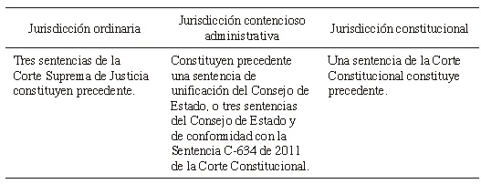 La aplicación del precedente judicial sería como sigue, según la división de la rama judicial en Colombia.