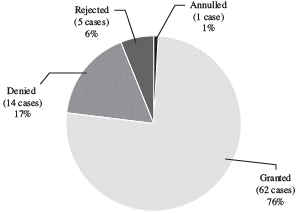 In the five rejected cases (6%), the jurisprudence pointed out that tutela was not the proper mechanism for the specific case. Finally, in just one case, the court annulled the decision, due to the inappropriate configuration of the parties in conflict. In short, 24% of the cases were somehow negative to the claim of protection and in 76% of the judgments, the Court found that the violation of the right to prior consultation existed and ordered the protection. According to these results, it is possible to affirm that once the court decides to review a case, there is a high probability that it will rule in favour or protecting indigenous peoples and afro-descendants' rights.