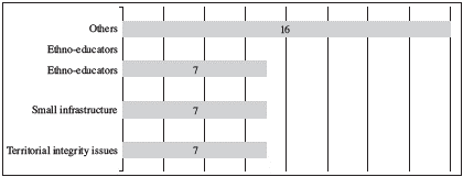 Furthermore, the Court studied 37 micro interventions on issues related to territorial integrity and ruled on seven cases (see Graph 5). It also reviewed small infrastructure constructions such as a water waste or luxury small hotel and spa in Providencia island (seven similar cases). Additionally, (seven cases) of ethno-educators without the authorization of the communities to teach in their territories, and other cases such as the relocation of an informal salesperson on a private beach or a mobile radio station in indigenous territories (16 different cases). This division of macro and micro interventions as well shows that the FPIC of the communities should be checked without regard for the scale of the intervention according to the arguments that follow.