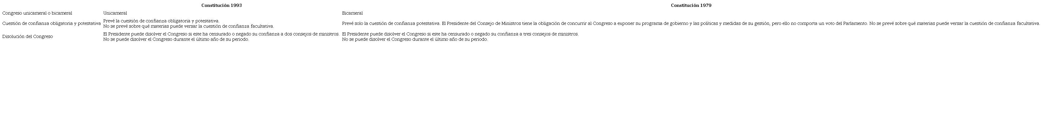 En el siguiente cuadro se presentan las principales innovaciones de la parte orgánica de la Constitución de 1993, en contraste con las previstas por la Constitución de 1979.