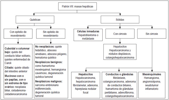 La patología hepática es extensa y compleja; cuando se debe hacer frente al estudio de una biopsia hepática y se analizan los hallazgos morfológicos, resulta de mucha ayuda apoyarse en algoritmos que, de una manera más simple, permite una aproximación al diagnóstico; sin embargo, solo una adecuada correlación entre la histopatología y la historia clínica completa puede lograr óptimos resultados .