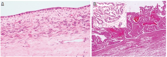 El algoritmo utilizado para el estudio de las masas (figura 13), consiste en determinar si se trata de una masa quística o sólida, observar el tipo de revestimiento epitelial o la célula de origen de la proliferación tumoral (figura 14). Estudios adicionales de histoquímica e inmunohistoquímica pueden ser de utilidad. Adicionalmente, se debe establecer si se trata de una masa primaria o secundaria donde la correlación clínica y de imágenes es fundamental (30, 31).