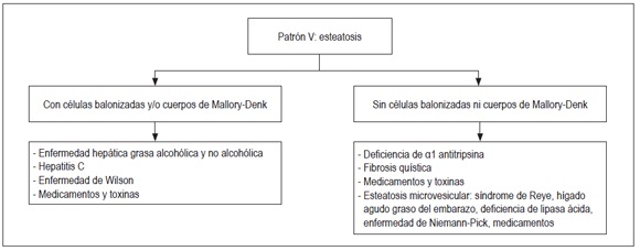 Patrón V, esteatosis