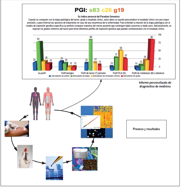 Ya que, en gran parte, estas respuestas se deben a las alteraciones en las proteínas celulares, codificado por genes de estas células blancas, es probable que las células blancas tengan programas específicos de expresión genética en la presencia de un tumor (figura 1). Si estos perfiles se pueden correlacionar con el tamaño, localización o etapa del cáncer, y progresión, esto podrían servir como biomarcador para el diagnóstico del cáncer gástrico, su pronóstico, control terapéutico o como coadyuvantes para los medicamentos contra el cáncer (figura 2).