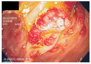 Paciente femenina de 38 años, con varios meses de evolución de astenia y adinamia. Durante el examen físico se observan adenopatías cervicales y leve dolor a la palpación en la fosa ilíaca derecha. Por estos síntomas, se solicitó endoscopia digestiva alta y colonoscopia.
