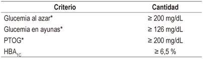 En la Tabla 1 se definen los criterios para el diagnóstico de DM según la Asociación Americana de Diabetes (ADA) 45.