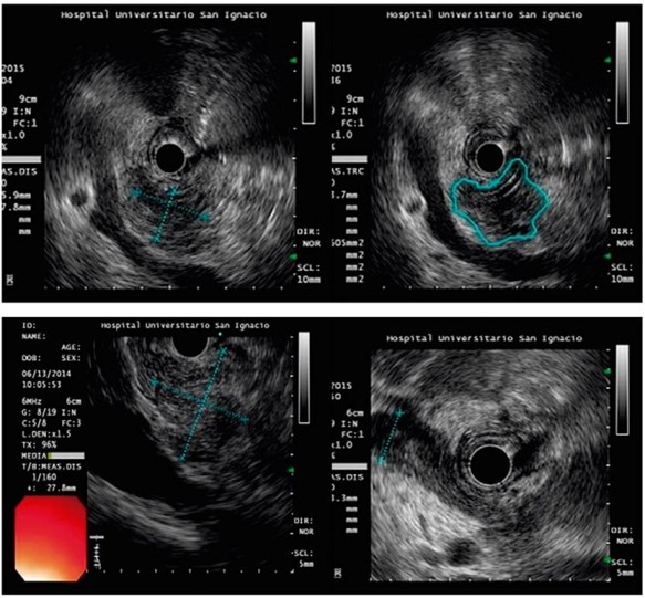 A pesar de la alta sensibilidad de la USE, sigue siendo difícil diferenciar el adenocarcinoma del páncreas de otros tipos de lesiones sólidas, al considerar solo las características endosonográficas 7,10. En este sentido, la utilización de la elastografía y los contrastes ha permitido la caracterización de patrones que mejoran la sensibilidad visual de las imágenes, así como la orientación en la toma de la biopsia, para obtener el tejido y lograr la confirmación histológica de las lesiones, la cual es indispensable a la hora de decidir medidas terapéuticas.