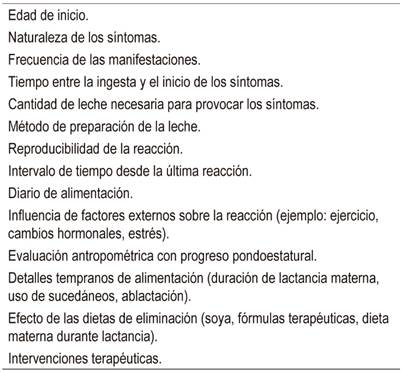 De acuerdo con las recomendaciones de las guías de acción contra la alergia a la leche de vaca (Diagnosis and Rationale for Action against Cow’s Milk Allergy, DRACMA) es necesario considerar los siguientes aspectos 14: