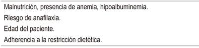 Valoración nutricional: todo paciente requiere una evaluación nutricional completa para detectar el riesgo nutricional de ingesta de alérgenos.