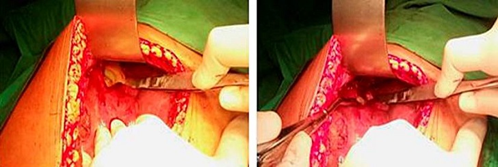 Teniendo en cuenta la pobre respuesta al tratamiento médico impuesto y el fracaso del abordaje por punción percutánea con guía ecográfica, se decidió realizar una laparotomía. Se realizó una incisión transrectal derecha supraumbilical profundizando con el electrocauterio por planos hasta llegar a la cavidad abdominal. Se encontró un área de aproximadamente 10 cm renitente en la parte superior del lóbulo derecho del hígado en íntima relación con el diafragma; se puncionó cuidadosamente y se confirmó el diagnóstico que, por las características del pus, podría ser piógeno, el cual pudo haber sido amebiano en un inicio. Se tomó una muestra para cultivo y antibiograma. Se procedió posteriormente a destechar toda el área del absceso y se aspiró 600 mL de pus amarillo cremoso; se exploraron digitalmente las cavidades de este por ser multiloculado, se lavó con abundante suero fisiológico y aplicó povidona yodada cuidadosamente evitando la contaminación del resto de la cavidad (Figura 3). Se dejaron drenes por contrabertura y la cavidad se cerró por planos. Posteriormente, la paciente pasó a la Sala de Cuidados Intensivos por un período de tres días, luego se le trasladó a la Unidad de Cuidados Intermedios y a la Sala de Cirugía, donde se completó el tratamiento con antibióticos. Se recibió un antibiograma 72 horas después del drenaje quirúrgico, cuyo resultado fue positivo para Escherichia coli.