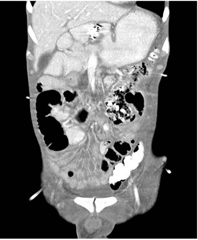 Given the patient’s good clinical evolution, control of the infectious focus, and intestinal leakage evidenced through imaging, oral administration was started on the sixth postoperative day with adequate tolerance. Therefore discharge was advised on the tenth day of hospital stay. After 15 days, an outpatient follow-up was performed. The patient reported that he continued showing good oral tolerance and appropriate bowel transit, with no episodes of fever during his homestay.