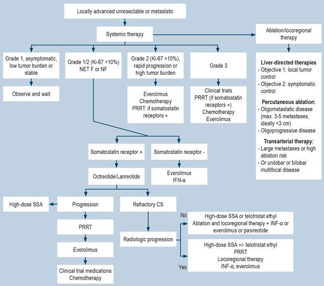 Niederle B, Pape UF, Costa F, Gross D, Kelestimur F, Knigge U, et al. ENETS consensus guidelines update for neuroendocrine neoplasms of the jejunum and ileum. Neuroendocrinology. 2016;103(2):125-38. https://doi.org/10.1159/000443170