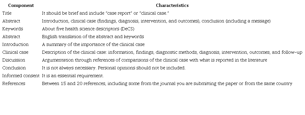 A clinical case report is the first effort by many doctors and other health workers to convey a message to the medical community through publication in a specialized journal1. In clinical practice, we frequently encounter interesting clinical cases. When these are presented during a visit or medical review of the service, an inter-consultation, or a clinical meeting, someone usually says: This case must be published!2. Especially in university environments, it is common for a young doctor or medical student to become enthusiastic about a case and decide to present it at a conference or publish it2.