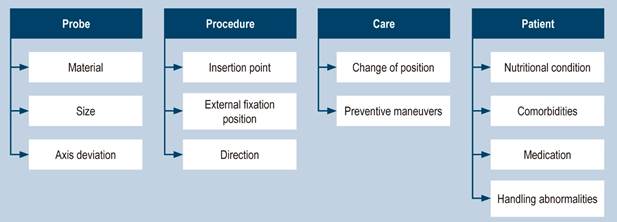 From the pathophysiological point of view, BBS occurs due to an increase in pressure between the internal and external fixation of the gastrostomy, resulting in ischemia and necrosis of the tissue, then inflammation and fibrosis, and finally, the displacement of the external fixation and thus the BBS5. The main risk factors depend on the tube, the procedure, care with the device, and the patient (Figure 1).