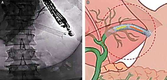 Abstract: The primary tool for malignant biliary obstruction is decompression of the bile duct, using endoscopic retrograde cholangiopancreatography (ERCP) with stenting, which is satisfactory in many cases; still, the actual challenge arises when it is impossible to cannulate the ampulla of Vater due to neoplastic involvement at that level. Although percutaneous transhepatic biliary drainage (PTBD) is an option, it has high morbidity, which directly impacts the patient’s quality of life by having an external device added to a malignant pathology. With the arrival of endoscopic ultrasound (EUS), new methods have been reported, such as EUS-guided hepaticogastrostomy (EUS-HGS), which is performed through a natural orifice (NOTES) and positively impacts the outcome of these patients. Below is an example of our experience with the first three cases in Colombia.