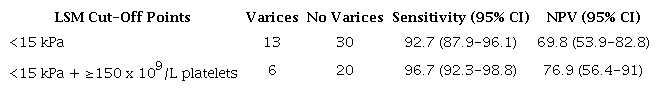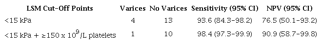 Diagnostic Performance of Transient Liver Elastography and Platelet Count for the Exclusion of Esophageal Varices