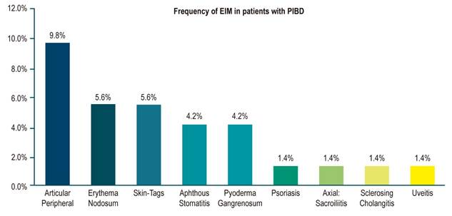 In this context, it is essential to understand the clinical, evolutionary, and prognostic characteristics of EIMs in the pediatric population, as well as their prevalence, to estimate their impact and thus offer a comprehensive approach in the therapy and follow-up of patients with PIBD.