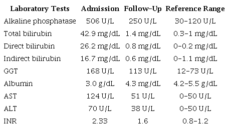 In the presented case, although the GGT level was elevated, it showed only a minimal increase, less than twice the upper limit of normal. A review by Velimir and colleagues reported a BRIC patient with minimal GGT elevation13.