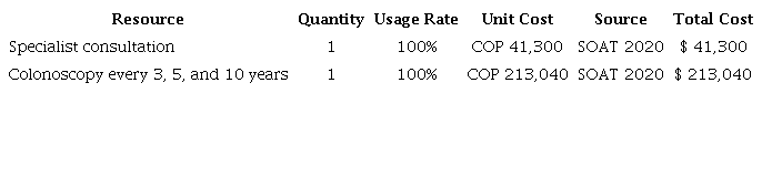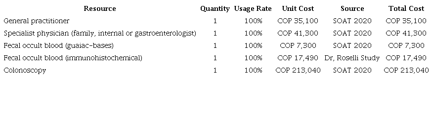A 31-year time horizon was defined, starting screening at age 45 and continuing to age 76, the life expectancy in Colombia according to the National Administrative Department of Statistics (DANE in Spanish). The evaluation was conducted from the perspective of Colombia’s General System of Social Security in Health (SGSSS in Spanish), incorporating the value of all direct resources associated with the use of the technology and the perceived health benefits directly experienced by patients. A 5% annual discount rate, recommended by the IETS, was applied to costs and health effectiveness outcomes. The primary outcomes were the proportion of CRC-related mortality in both groups and quality-adjusted life years (QALYs).