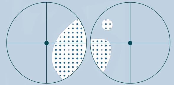 Lesions of the LGBs are rare. Unilateral involvement typically causes congruent bilateral homonymous hemianopia20 or partial homonymous anopia. In the context of multiple sclerosis, such lesions result from demyelinating processes. However, thromboembolic events have also been described, leading to variability in visual defects due to the anatomical diversity of LGB vascularization and anastomoses21.