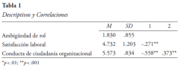 Hipótesis 2. La ambigüedad de rol presentará una relación significativa y negativa con la satisfacción laboral.