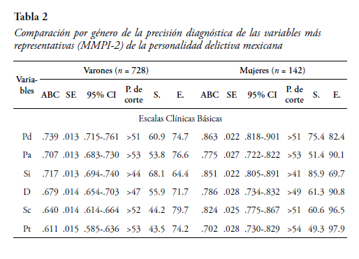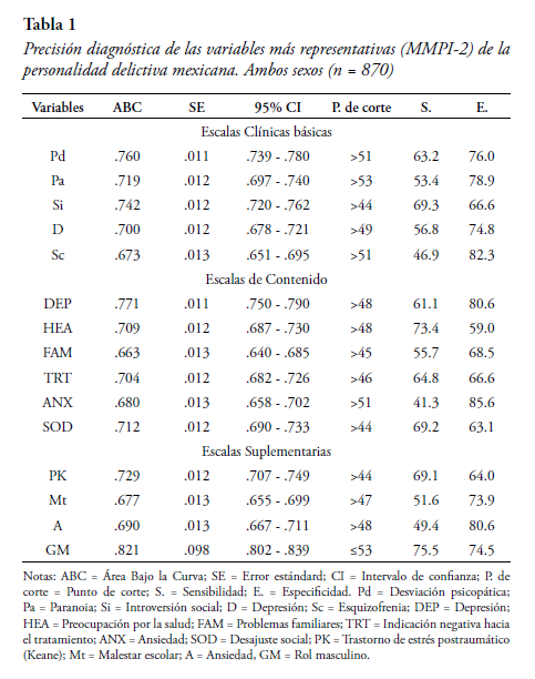 Precisão diagnóstica do MMPI-2 na personalidade delitiva mexicana: Uma análise através da curva de ROC
