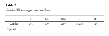 Gender differences found in this study agree with the scientific literature. Therefore, it was expected for men to score higher in CWB ratings than women (Bowling & Burns, 2015; Spector & Zhou, 2013), since women are expected to score slightly higher than men on integrity related tasks. Therefore, somewhat higher score for females was expected in the RI. Both, the effect size of the differences found (r= .15 - -.22) and the regression effect size (R2 =.24) were small. Spector & Zhou (2013) discuss the possibility that the small gender differences generally found are due to reporting bias and to gender roles, as women are less inclined to admit aggressive behaviors than men (Vandello et al., 2009 in Spector & Zhou, 2013), so women might tend to minimize reporting the extent to which they perform behaviors which are unacceptable for them (Spector & Zhou, 2013).