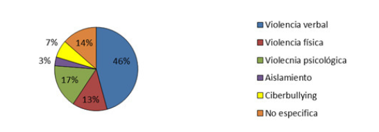 Finalmente, respecto a las formas a través de las cuales se ejerce este tipo de violencia se observa que es mediante insultos (27 participantes), burlas (5), golpes (8), aislamiento (2 participantes), ciberllullying (4), críticas (2), molestar (1), rumores (1) y hacer sentir mal (1). Asimismo, se observa que 8 participantes no contestan a esta cuestión (ver Figura 3).