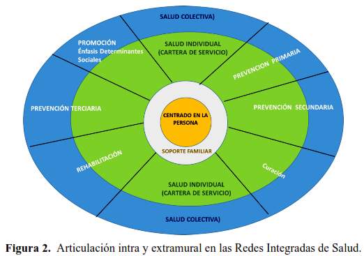El modelo de atención integral de salud basado en familia y comunidad (MAIS-BFC), aún vigente, se desarrolló con énfasis en las actividades preventivo- promocionales en el primer nivel de atención, promoviendo la identificación de factores de riesgo en el ámbito comunitario y designando paquetes de intervenciones para cada etapa de vida (21,22). La OMS plantea pasar a un modelo de cuidados por curso de vida, que considere la salud como un proceso dinámico que considere intervenciones más allá de la atención específica, que considere que la salud de un individuo es influenciada por sus antecedentes con influencia en su salud en el futuro (23). Puertas et al., basados en la experiencia de Honduras señalan que la organización en RIS, plantea intervenciones con un diseño de soluciones basado en la perspectiva y experiencias de las personas, y su preferencia con la finalidad de fortalecer el cuidado de las mismas y tomar decisiones compartidas con la familia y la comunidad (24).